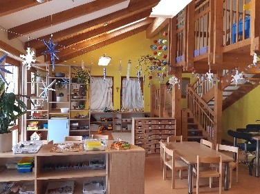 Die Räumlichkeiten sind auf drei Ebenen aufgeteilt. Das Haus wurde bisher drei Mal erweitert. Seit 2021 komplettiert ein Nebengebäude unseren Kindergarten. Somit können wir auch ausreichend Krippenplätze anbieten.